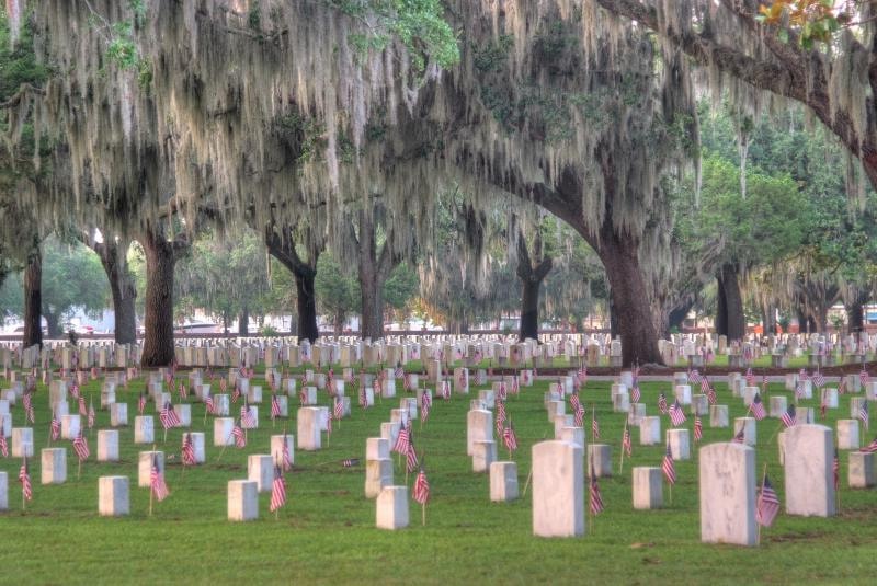 At the first Memorial Day ceremony held in Arlington National Cemetery, small flags were placed at every marker, starting a tradition that is carried on to this day in National Cemeteries all over the country, including the Beaufort National Cemetery here at home.