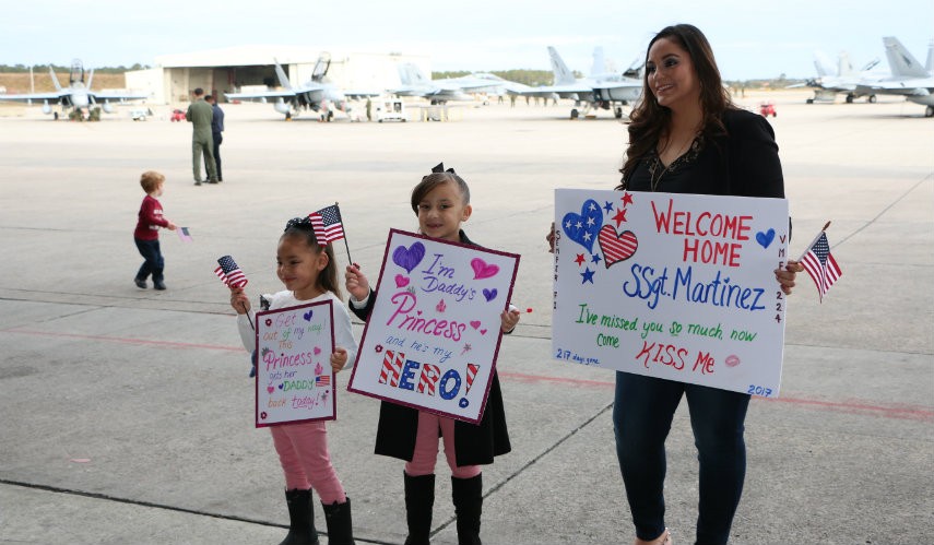 Welcome Back Bengals! Just in time for Thanksgiving, Marines from VMFA (AW)-224 aboard MCAS Beaufort SC returned home this week from a deployment in the middle eastern country of Bahrain in support of Operation Inherent Resolve.that had them away from their loved ones for more than 6 months.